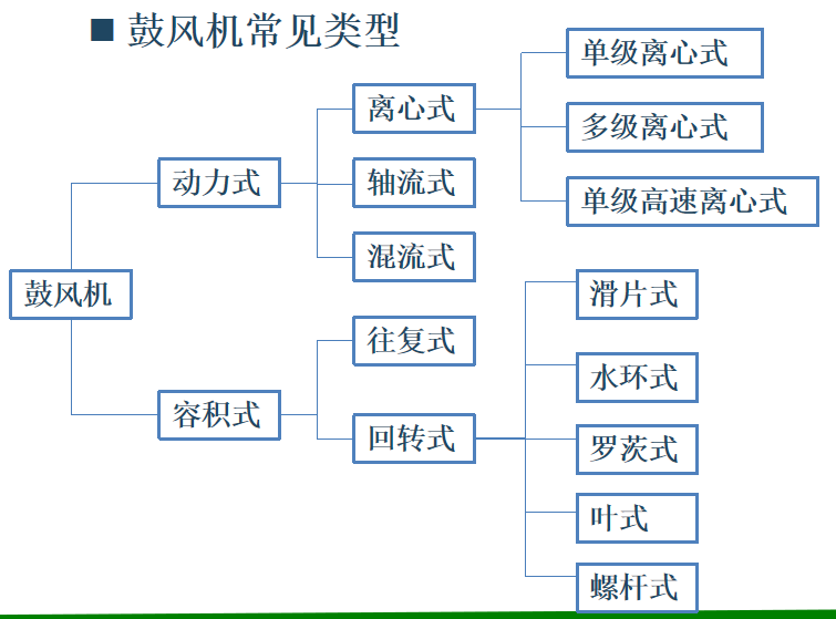 當(dāng)30kPa<排氣壓力<200kPa,或者說(shuō)壓縮比 e =1.3~3,為鼓風(fēng)機(jī);